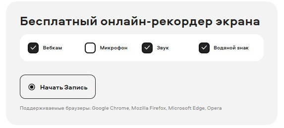 Действия доступны для любых устройств. Можно использовать мобильную версию сайта, но потребуется разрешить использование камеры и микрофона в браузере. В меню выберите, какую часть экрана вы будете записывать и затем нажмите кнопку «Начать запись». Сохраните файл на вашем телефоне и поделитесь с участниками любым удобным способом.