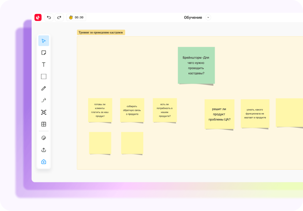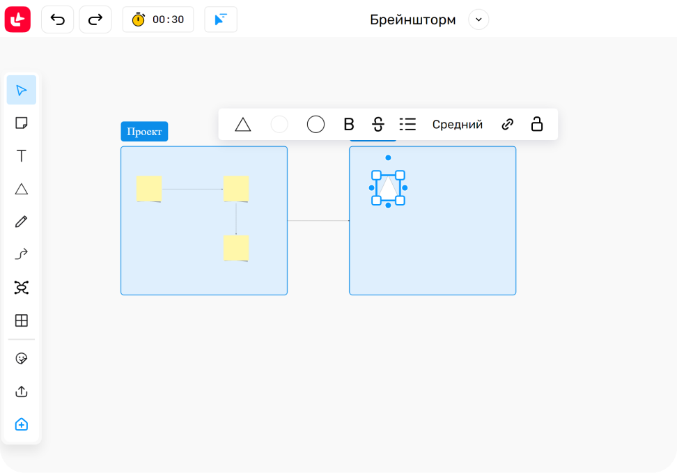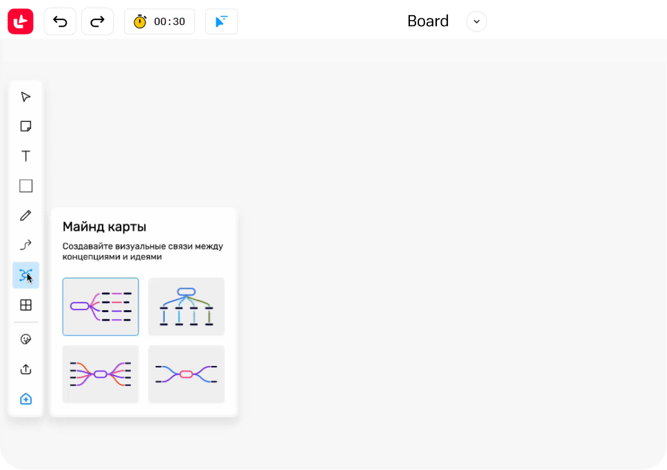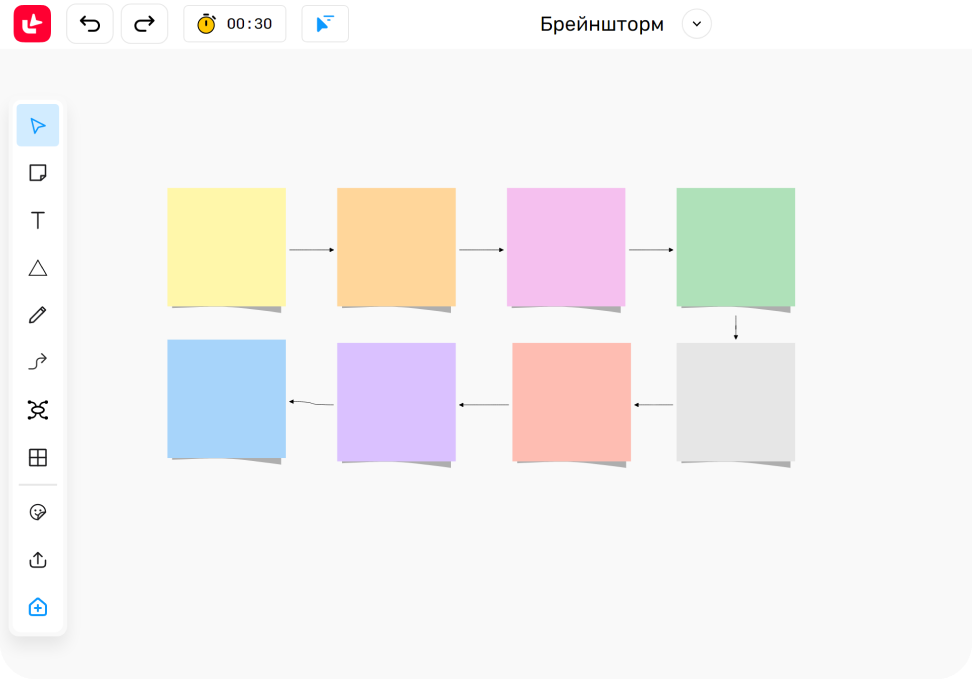 Для работы используйте любой шаблон в Досках от МТС Линк: стикеры, фреймы или интеллект-карты