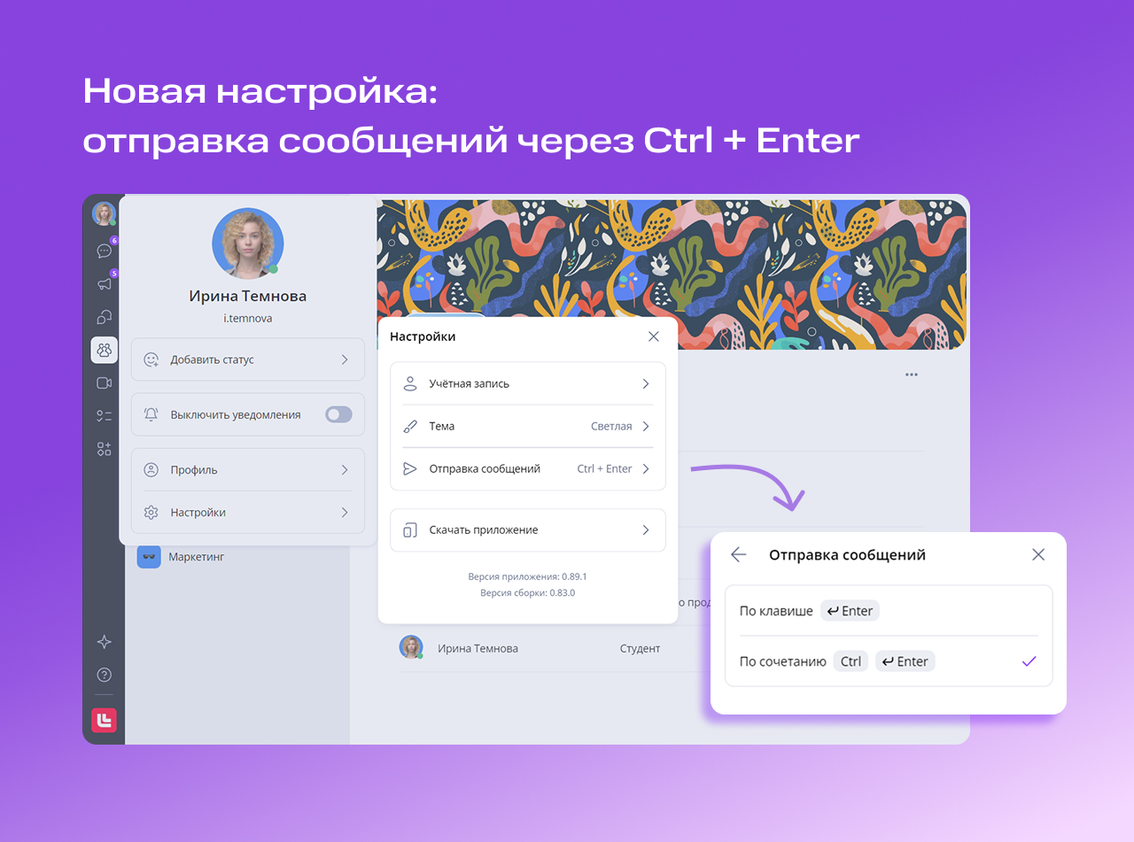 В настройках профиля появился новый способ отправки сообщений. Теперь вместо Enter можно использовать сочетание Ctrl + Enter.