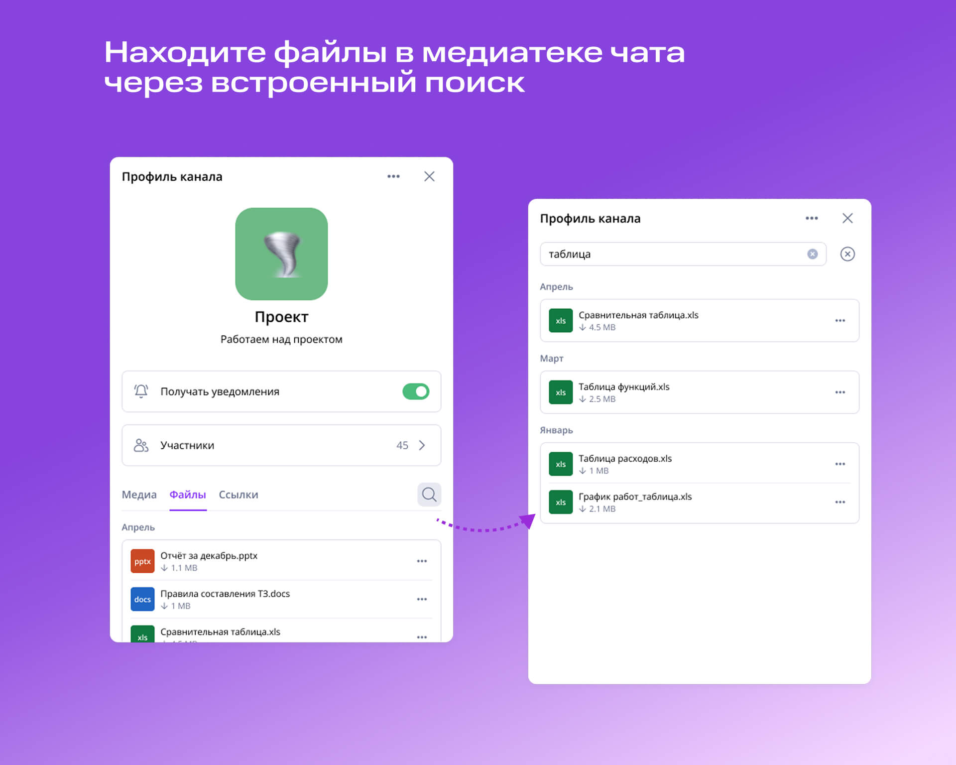 Ищете договор, таблицу или презентацию для совещания? Теперь не обязательно листать весь список в медиатеке, ведь вам доступен поиск.
